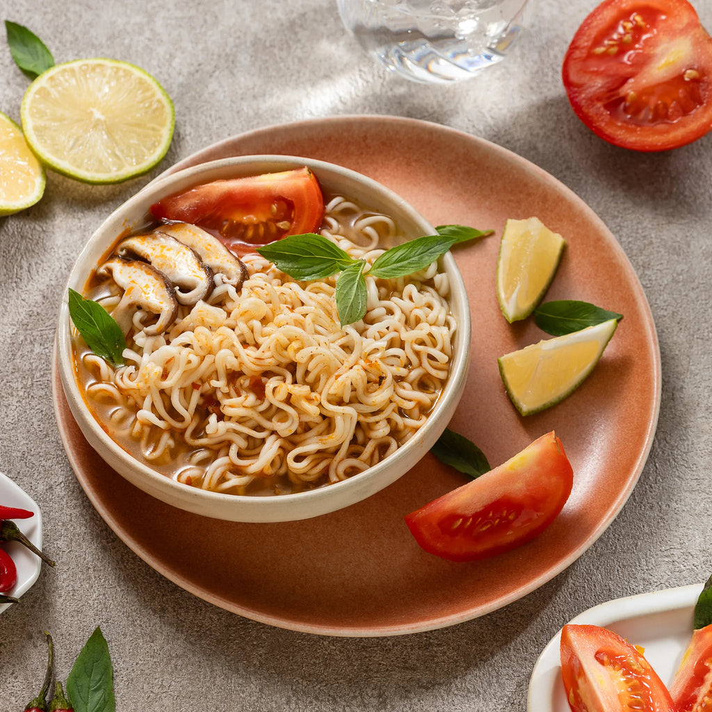 The Thai Tom Yum Instant Noodles is a classic delicacy infused with the essence of Thai spices. The rich and tangy soup base perfectly balances sourness and spiciness, with carefully selected spices blended into creamy coconut milk, enhanced with lemon juice and chili sauce. This rich, vegan-friendly broth offers a refreshing yet hearty flavor that awakens your taste buds from the very first sip!